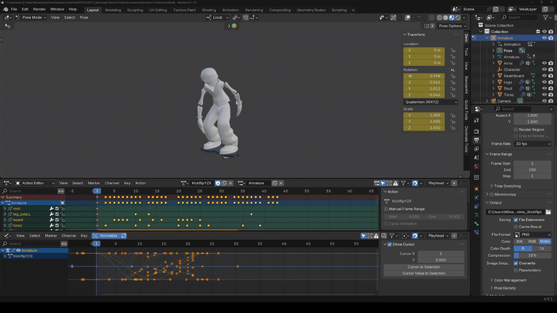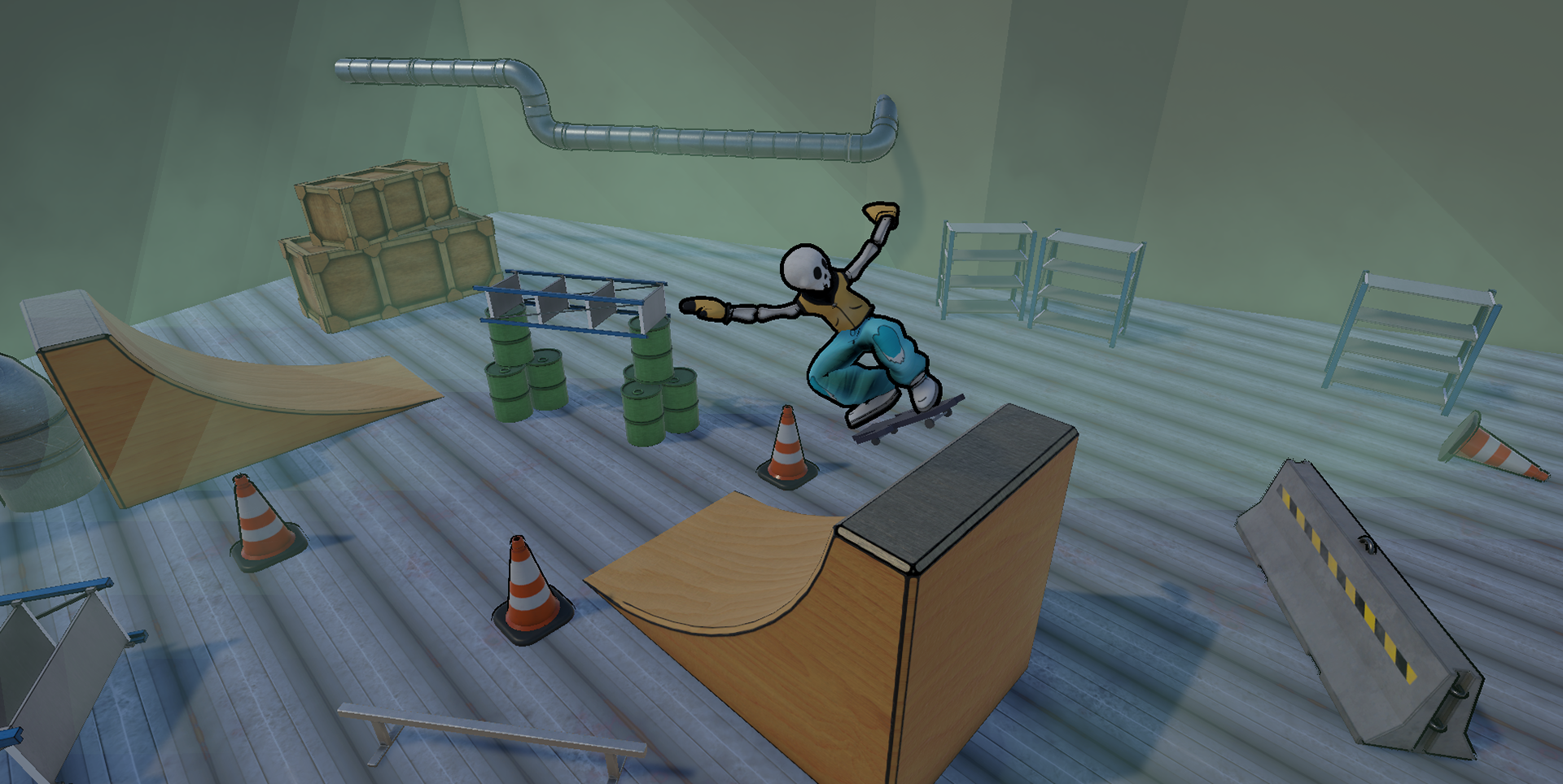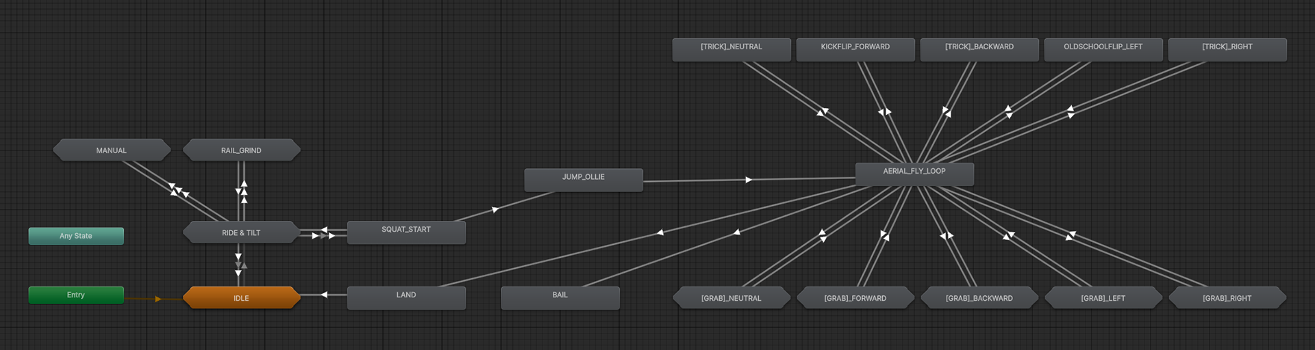 After some practice using video reference of real people performing skate tricks, I built our a handful of trick types based on the system our game planned to use.